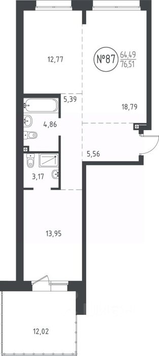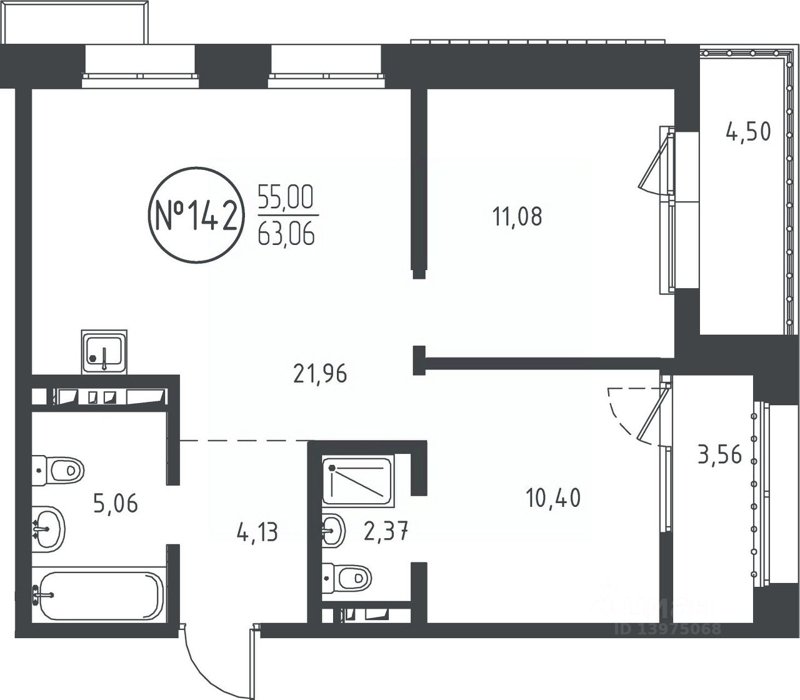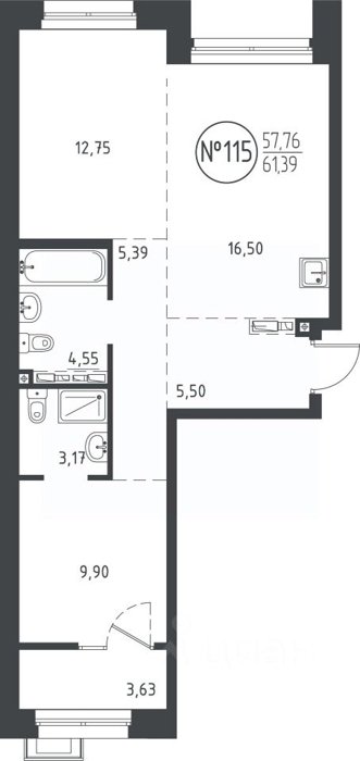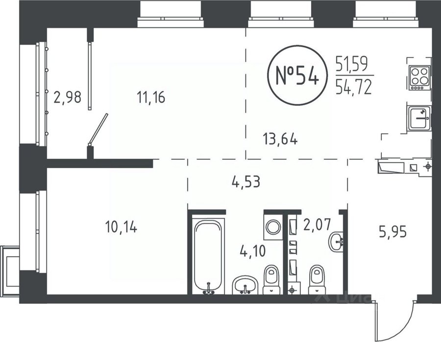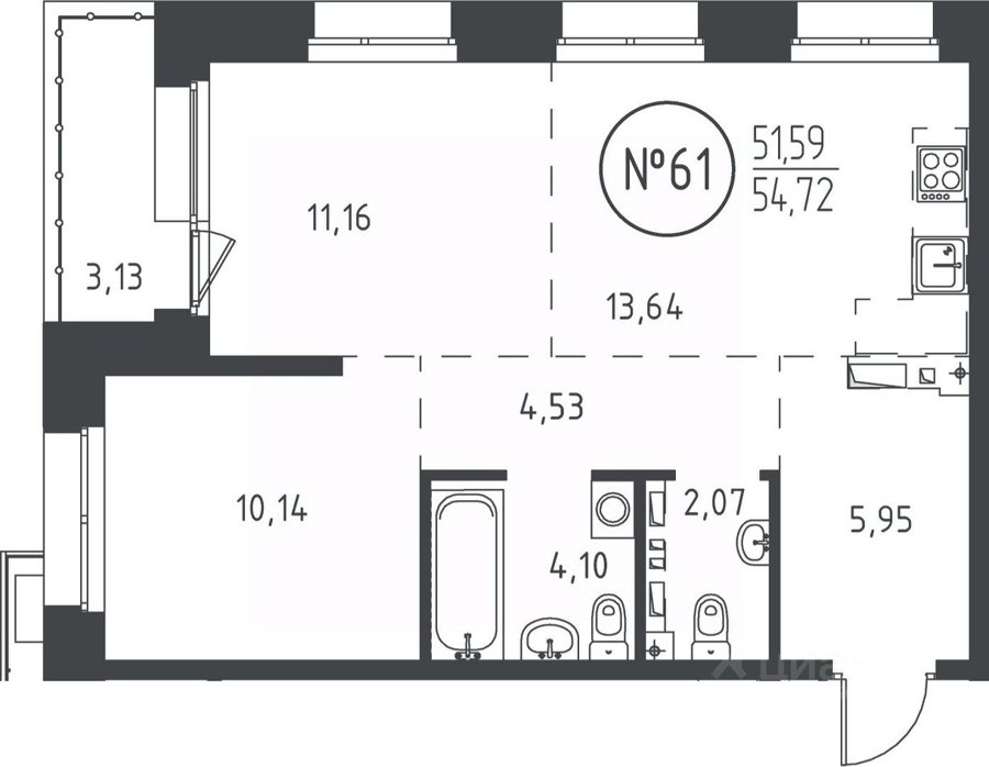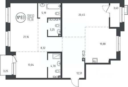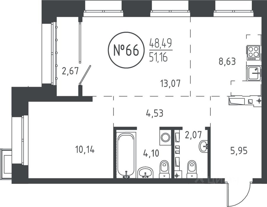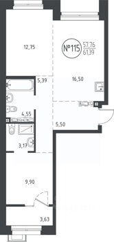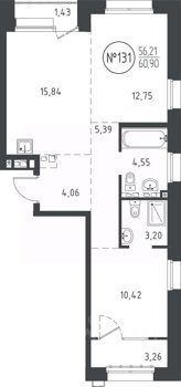 Площадь от 50.47 м2