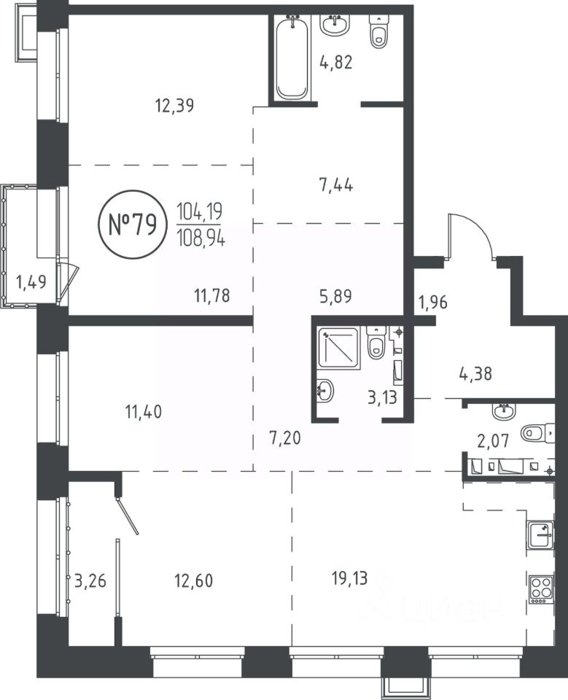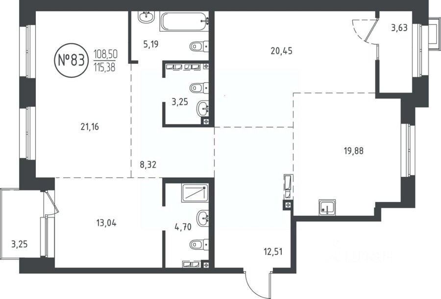 Площадь от 112.8 м2