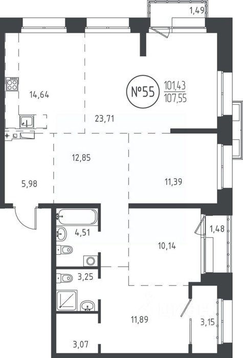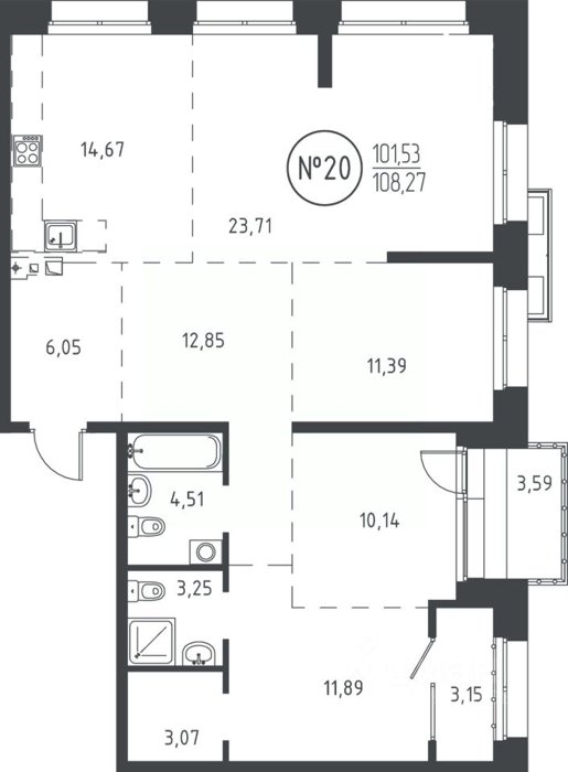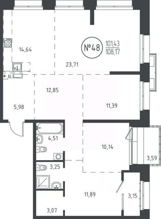 Площадь от 102.64 м2