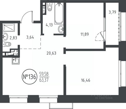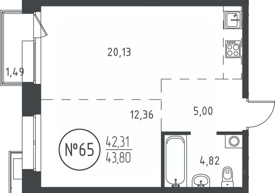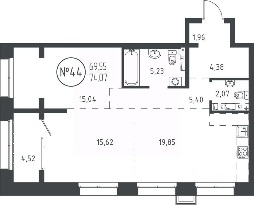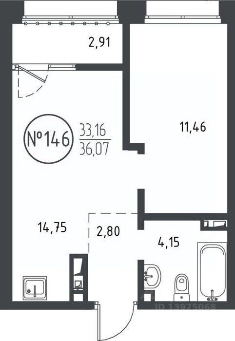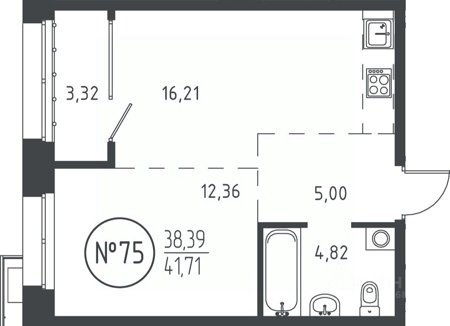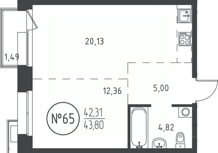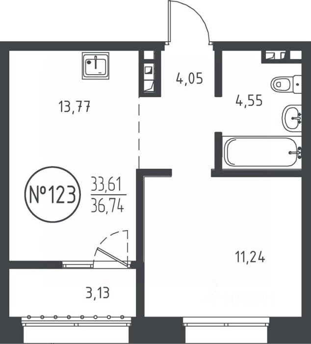 Площадь от 36.07 м2