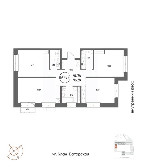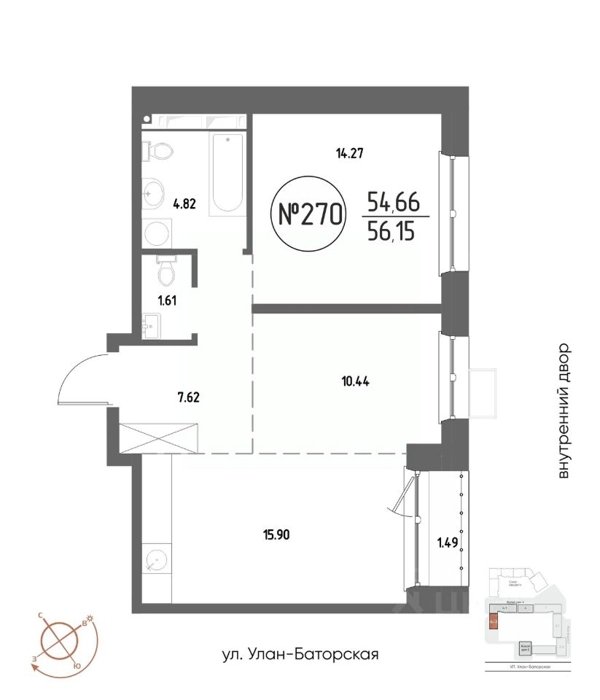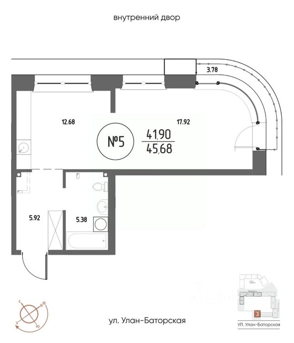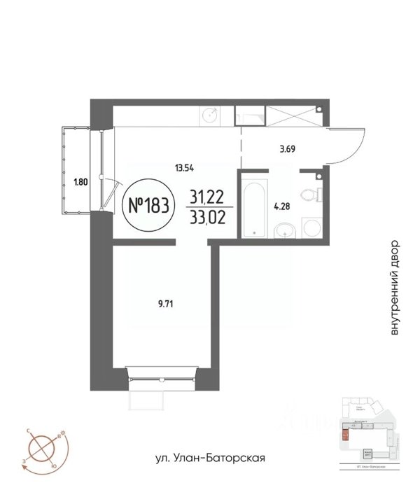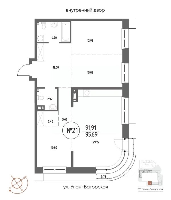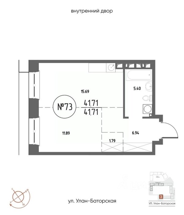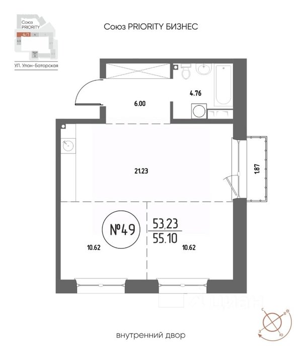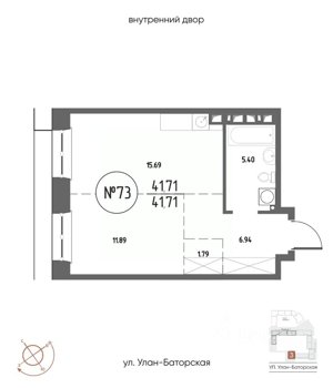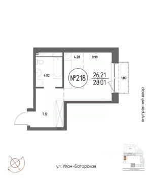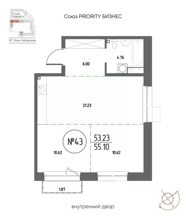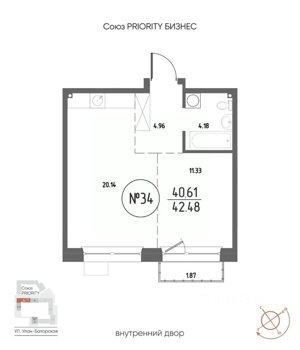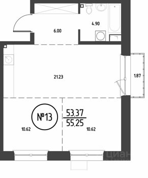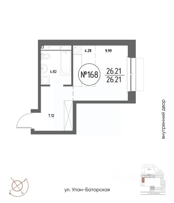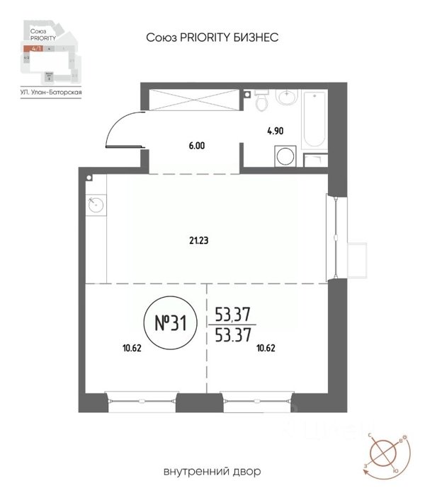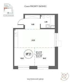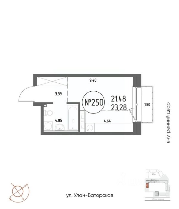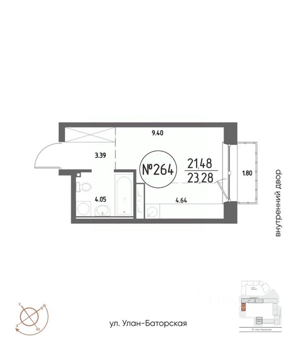 Площадь от 21.48 м2