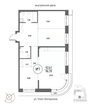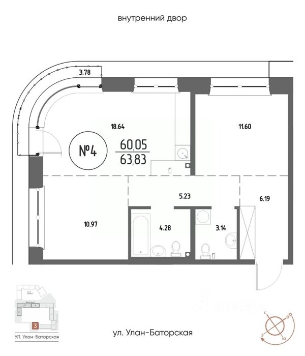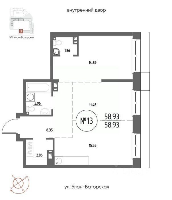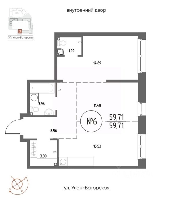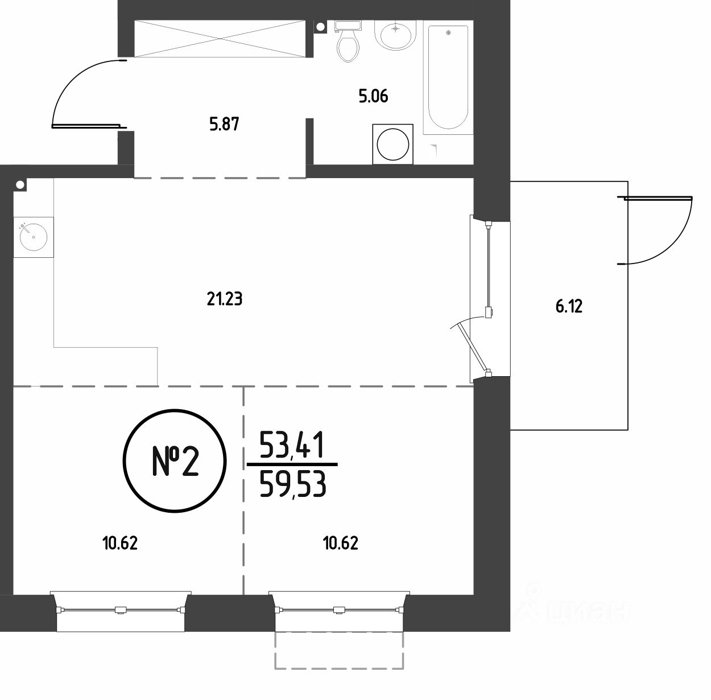 Площадь от 53.37 м2