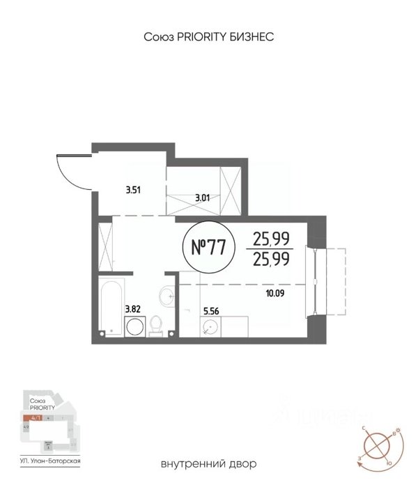 Площадь от 25.18 м2