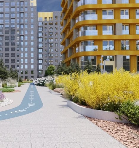 Просторные зеленые зоны, создают атмосферу уюта и гармонии, позволяя вам наслаждаться свежим воздухом и отдыхом на природе, не покидая пределы вашего нового дома.